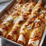 - Top Enchiladas with Sauce: Pour the white sauce evenly over the enchiladas, ensuring each one is well covered.
