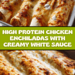 These 38g Protein Chicken Enchiladas with Dreamy White Sauce are a delicious and healthy twist on a classic Mexican dish. Made with shredded chicken seasoned with spices, wrapped in whole wheat tortillas, and topped with a creamy Greek yogurt-based white sauce and melted cheese, this recipe offers a perfect balance of flavor and nutrition. Baked until bubbly and golden, these enchiladas are great for a satisfying family meal.