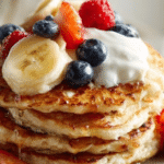 - Serve: Top the cooked pancakes with Greek yogurt, a drizzle of maple syrup, and fresh sliced fruit for a nutritious and balanced breakfast.
