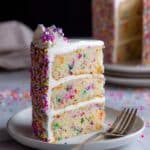 Keywords: funfetti cake, all butter cake, birthday cake, rainbow sprinkles cake, moist cake recipe, classic buttercream, celebration cake
