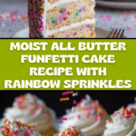 This All Butter Funfetti Cake is a moist, tender, and colorful celebration cake perfect for birthdays and special occasions. Made with simple pantry ingredients and classic American buttercream frosting, this cake features a light crumb dotted with rainbow sprinkles for a fun surprise in every bite. The recipe can be made as three luscious round cake layers or transformed into festive cupcakes.