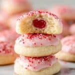 These Almond Cherry Cookies are a delightful blend of nutty ground almonds and sweet maraschino cherries encased in buttery, tender cookie dough. Each cookie is filled with a juicy cherry and finished with a smooth almond-cherry frosting topped with red decorating sugar, making them perfect for festive occasions or an indulgent treat.