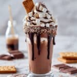 Indulge in a decadent Baileys S’mores Milkshake, combining rich chocolate ice cream, creamy Baileys Irish Cream, and classic s’mores elements like graham crackers, marshmallow fluff, and chocolate fudge. Perfect for a cozy treat or a fun adult dessert, this milkshake is beautifully garnished with whipped cream, chocolate squares, and graham cracker crumbs for a delightful twist on the campfire favorite.