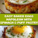 Baked Eggs Napoleon is a delightful brunch dish featuring layers of flaky puff pastry, creamy spinach, savory ham, and perfectly baked eggs. This elegant yet simple recipe combines textures and flavors to create an impressive and comforting meal that’s perfect for weekends or special occasions.