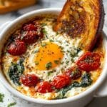 Baked Feta Eggs Breakfast is a simple yet flavorful dish combining creamy Greek feta cheese, juicy cherry tomatoes, and baked eggs, infused with fresh garlic, basil, and a touch of spice. Perfect for a comforting morning meal, it’s easy to prepare and serves beautifully with crusty bread for dipping.