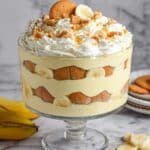 - Layer the Dessert: Line the bottom of a glass trifle bowl with a layer of vanilla wafers. Add a layer of sliced bananas over the wafers, then spoon a layer of the pudding mixture to cover the bananas completely. Repeat the layering process until all ingredients are used, finishing with pudding on top.
