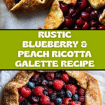 This Blue and Red Berry Ricotta Galette recipe combines the rustic charm of a flaky oatmeal tart crust with luscious ricotta cheese filling and fresh peaches and blueberries. A delicious, slightly sweetened fruit galette perfect for a cozy dessert or afternoon treat, featuring optional spices like cardamom or cinnamon and a crisp, buttery crust with a subtle oat texture.
