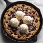 Keywords: brown butter cookie, skillet cookie, chocolate chip cookie, warm cookie dessert, cast iron cookie, easy dessert recipe