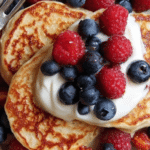 - Assemble and serve: Arrange your chosen toppings—maple syrup, raspberries, sliced banana, berry compote, chocolate spread, blueberries, and mini marshmallows—on a serving board. Add the warm pancakes and bacon just before serving, allowing everyone to build their own perfect brunch plates. Replenish toppings as needed during the meal.