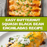 Hearty and flavorful Butternut Squash Black Bean Enchiladas featuring roasted butternut squash, black beans, and a blend of spices, topped with enchilada sauce and melted jack cheese. This vegetarian dish combines warm spices and creamy textures for a comforting meal perfect for any occasion.