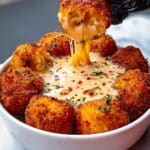 These Cheesy Jalapeño Ranch Chicken Poppers are crispy, flavorful bite-sized appetizers featuring shredded chicken, sharp cheddar, jalapeños, and ranch seasoning, all coated in a crunchy breadcrumb crust and deep-fried to golden perfection. Served with a creamy, tangy homemade ranch dip, they make a perfect snack or party treat.