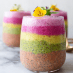 This vibrant Chia Seed Breakfast Pudding is a colorful and nutritious way to start your day. Featuring layers of fruity and chocolaty flavors, it combines creamy textures with superfoods like chia seeds and wheatgrass. It’s a refreshing, wholesome breakfast that’s as beautiful as it is delicious.