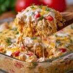 - Serve: Cut the casserole into squares and serve hot. Add optional toppings such as salsa, guacamole, extra sour cream, or chopped cilantro as desired for enhanced flavor and presentation.