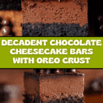 Keywords: Chocolate Cheesecake Bars, Oreo crust, chocolate ganache, rich cheesecake dessert, easy chocolate cheesecake recipe