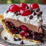 This decadent Chocolate Cherry Cream Pie combines a buttery pre-baked pie crust with a luscious layer of sweet cherry filling, topped with rich chocolate pudding and fluffy whipped cream. Finished with chocolate chips and fresh cherries, this no-bake dessert is perfect for any occasion and offers a delightful balance of fruity and chocolate flavors.