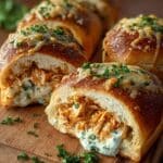 Creamy Garlic Herb Chicken Crescent Rolls are a delicious, comforting meal wrapped in flaky pastry. Filled with tender chicken, fresh spinach, and a rich garlic herb cream sauce, they make a perfect dinner or impressive appetizer for any occasion.