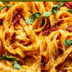 This Creamy Sun-Dried Tomato Fettuccine is a rich and flavorful pasta recipe that combines tender fettuccine with a luscious sauce made from sun-dried tomatoes, garlic, cream, and Parmesan cheese. It’s easy to prepare, perfect for a comforting weeknight dinner, and offers a delightful balance of creamy and tangy flavors, garnished with fresh basil for a burst of freshness.