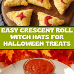 These Crescent Roll Witch Hats are a fun and delicious Halloween-themed snack made from flaky crescent roll dough, pepperoni decorations, and optional mozzarella cheese sticks. Perfectly baked to a golden brown, they are adorable finger foods that pair wonderfully with pizza sauce for dipping, making them an ideal treat for parties or festive gatherings.
