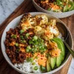 This Crispy Chile Ground Beef and Cauliflower Protein Bowl is a flavorful, satisfying meal that combines spicy, smoky beef with fresh, zesty cauliflower rice and vibrant toppings. It’s perfect for a nourishing lunch or dinner that’s both low-carb and packed with bold tastes.