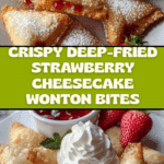 Delight in these crispy and creamy Deep-Fried Strawberry Cheesecake Stuffed Wonton Bites, featuring a luscious cream cheese and strawberry filling encased in golden wonton wrappers. Perfect as a fun appetizer or a decadent dessert, these bites combine the rich flavors of cheesecake with a fruity twist, fried to perfection for a crunchy exterior and melting center.