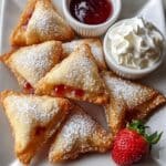 Keywords: strawberry cheesecake wontons, deep-fried dessert, cream cheese wontons, strawberry dessert bites, crispy cheesecake bites