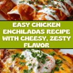 Chicken enchiladas are a comforting and flavorful Mexican-inspired dish that’s perfect for a satisfying dinner. This recipe features tender shredded chicken wrapped in soft tortillas, smothered in zesty red enchilada sauce, and topped with melted Monterey Jack cheese. It’s easy to make and sure to please the whole family.