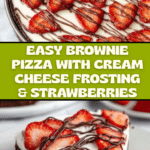 Keywords: brownie pizza, dessert pizza, cream cheese frosting, strawberry brownie, chocolate drizzle, easy dessert