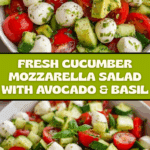 This easy cucumber mozzarella salad is a refreshing and vibrant dish perfect for warm days or as a light side. Combining creamy avocado, fresh mozzarella, and crisp cucumber with a tangy balsamic dressing makes for a simple yet flavorful meal.