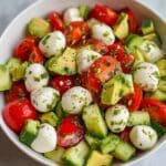 This easy cucumber mozzarella salad is a refreshing and vibrant dish perfect for warm days or as a light side. Combining creamy avocado, fresh mozzarella, and crisp cucumber with a tangy balsamic dressing makes for a simple yet flavorful meal.