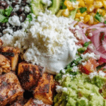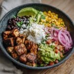 Easy Low Carb Burrito Bowl with Seasoned Chicken and Fresh Toppings Recipe