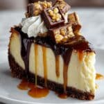 This Easy Snickers Cheesecake combines creamy, smooth cheesecake with crunchy, gooey Snickers pieces for an indulgent dessert perfect for any occasion. A buttery graham cracker crust serves as the foundation for this rich, sweet treat that’s baked to perfection and chilled to set.