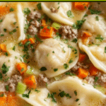 Egg Roll Soup captures all the delicious flavors of an egg roll in a warm, comforting soup. With ground pork, crunchy cabbage, and vibrant carrots simmered in a savory broth, it offers a satisfying meal that’s easy to prepare. Garnished with green onions and a boiled egg, this soup is perfect for a cozy dinner any day of the week.