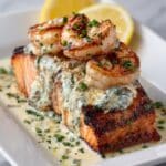 Elegant Crab Shrimp Stuffed Salmon features tender salmon fillets filled with a savory mixture of lump crab meat, chopped shrimp, and creamy cheese, seasoned with herbs and spices, seared to perfection, then finished in the oven for a deliciously sophisticated seafood entrée.