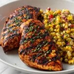 Store leftover grilled chicken and corn salsa separately in airtight containers in the refrigerator for up to 3 days. Reheat the chicken gently in a skillet or microwave until warmed through. The salsa is best enjoyed fresh but can be brought to room temperature before serving if chilled.