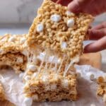 Fluffernutter Rice Krispie Treats combine the classic crispy, chewy texture of rice cereal with the luscious flavors of peanut butter and marshmallow fluff, creating a nostalgic and irresistible dessert bar perfect for any occasion.