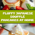 Fluffy Japanese Soufflé Pancakes are a delightful twist on traditional pancakes featuring a light and airy texture achieved by folding meringue into a delicate batter. These soufflé-style pancakes are cooked gently on the stovetop with steam, resulting in tall, soft, and pillowy stacks perfect for a special breakfast or brunch. Served with optional fresh whipped cream, fresh berries, powdered sugar, and maple syrup, they offer a sweet and elegant treat.