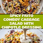The Frito Cowboy Cabbage is a vibrant and flavorful salad packed with fresh vegetables, beans, and a creamy chipotle dressing. Topped with crunchy Chili Cheese Fritos, this dish offers a perfect balance of texture and smoky heat, making it an ideal side or light meal.