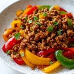 A quick and flavorful Ground Turkey and Peppers skillet dish featuring tender bell peppers and seasoned ground turkey cooked with savory garlic, onion, and a hint of paprika. This healthy and colorful meal is perfect for weeknight dinners or meal prep.