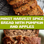 This Harvest Spice Bread is a moist and flavorful quick bread packed with cozy fall spices, pumpkin puree, shredded apple, shredded carrot, and crunchy walnuts. Perfect for breakfast or a comforting snack, this bread combines warm cinnamon, nutmeg, cloves, and ginger with subtle sweetness from brown and granulated sugars. Baked in a loaf pan, it features a soft crumb that’s lightly spiced and loaded with seasonal goodness.
