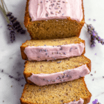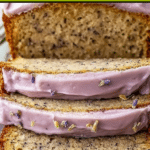 Keywords: lavender banana bread, banana bread recipe, floral banana bread, baked banana bread, lavender glaze, sweet bread, homemade banana bread