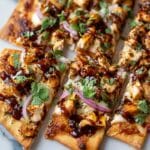 Keywords: BBQ chicken flatbread, high protein flatbread, easy flatbread pizza, grilled chicken pizza, homemade flatbread recipe, BBQ sauce flatbread