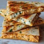 A delicious and nutritious High Protein Chicken Ranch Quesadilla featuring shredded chicken breast mixed with creamy ranch dressing, fresh bell peppers, and green onions, all melted together with gooey cheese inside crispy low-carb tortillas. Perfect for a low-carb, high-protein meal that’s creamy, crispy, and packed with flavor.