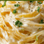 This homemade Alfredo sauce recipe delivers a rich, creamy, and luscious sauce with the perfect balance of butter, cream, and cheeses. Paired with tender fettuccine pasta, it’s a classic Italian-American favorite that’s easy to make from scratch and perfect for any pasta night.