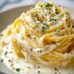 This homemade Alfredo sauce recipe delivers a rich, creamy, and luscious sauce with the perfect balance of butter, cream, and cheeses. Paired with tender fettuccine pasta, it’s a classic Italian-American favorite that’s easy to make from scratch and perfect for any pasta night.