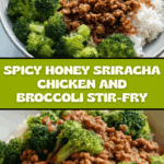 Keywords: Honey Sriracha Ground Chicken, broccoli stir-fry, quick chicken dinner, spicy chicken recipe, healthy chicken skillet