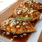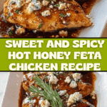 This Hot Honey Infused Feta Chicken recipe features juicy, pan-seared chicken breasts glazed with a sweet and spicy hot honey sauce, baked to perfection, then topped with tangy crumbled feta cheese and fresh thyme for a deliciously balanced dish that’s quick and easy to prepare.