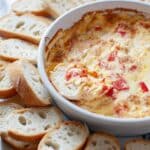 5. Cool and Serve: Remove the dip from the oven and let it cool for about 10 minutes. Serve warm with toasted baguette slices or your favorite crackers for dipping.