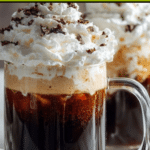 Keywords: Irish coffee, whiskey coffee, warm coffee drink, classic Irish beverage, whipped cream coffee