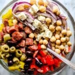 Store the salad in an airtight container in the refrigerator for up to 3 days. It’s best enjoyed within this time as the olives and pepperoncini will continue to flavor the salad. You can serve it cold or let it come to room temperature before eating. Avoid freezing as the texture will change.