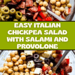 This Italian Chickpea Salad is a vibrant and hearty dish full of bold flavors and satisfying textures. Perfect for a light lunch or a flavorful side, it combines creamy provolone, savory salami, and tangy vegetables, all brought together with a zesty dressing.